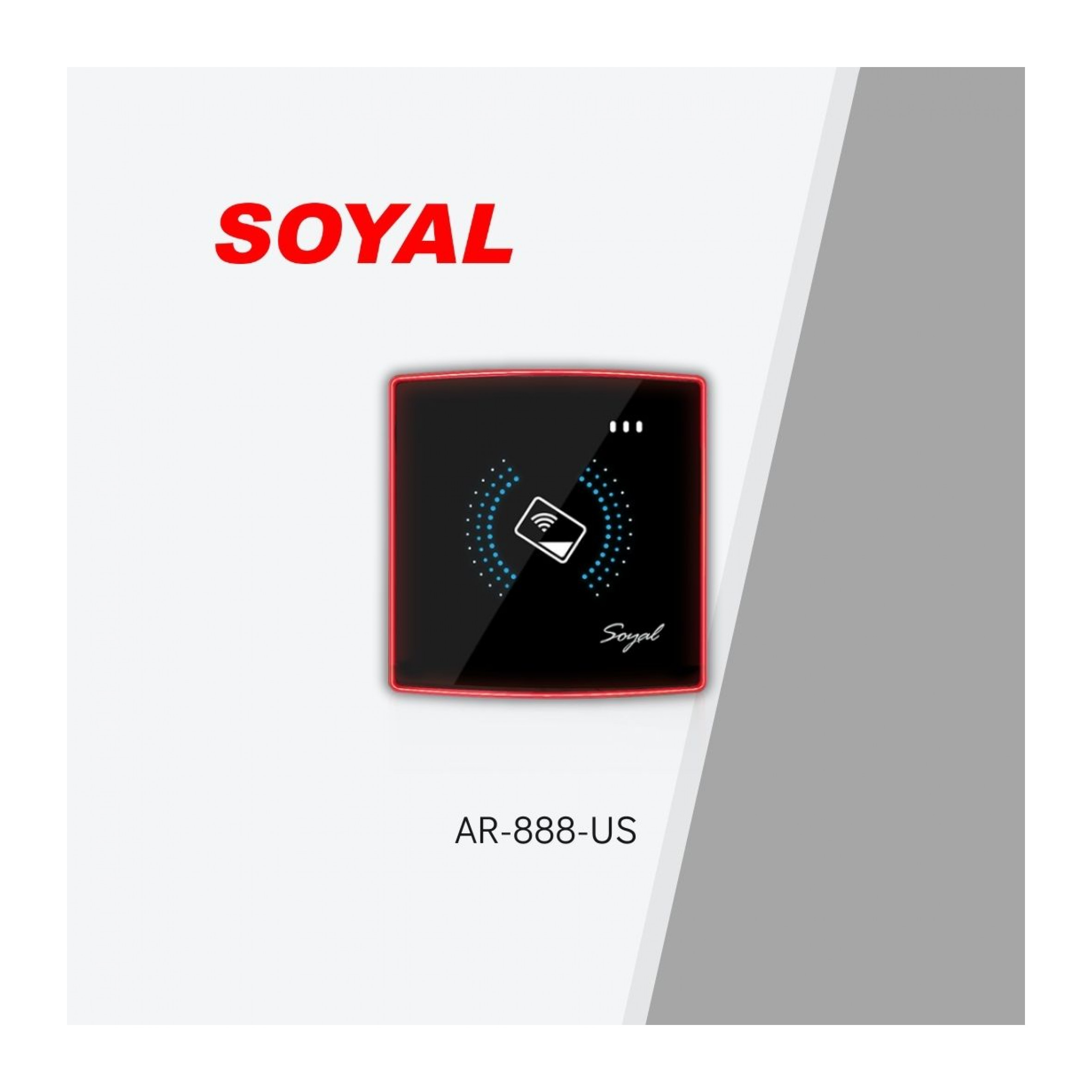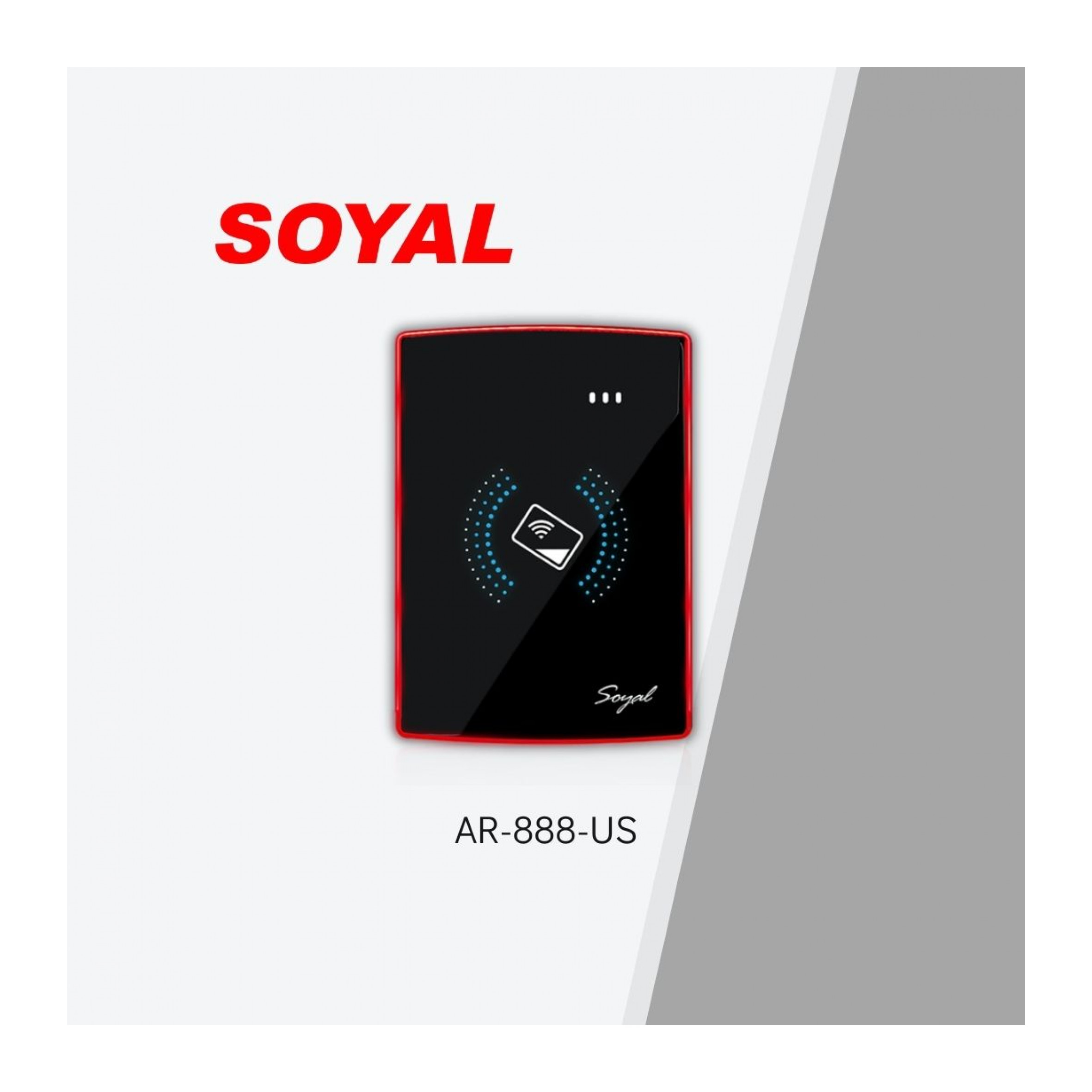 The Soyal AR-888-U proximity access control reader has been designed to operate with all Soyal Controllers with a Wiegand port to enable cable runs of up to 30 meters to be used between controller and reader. This flush proximity reader has bi-color edge LEDs, 3 one color LEDs and 1 beeper for identification. The flush mounted design allows for neat installation. The IP55 weather resistant design can be used in most environments.